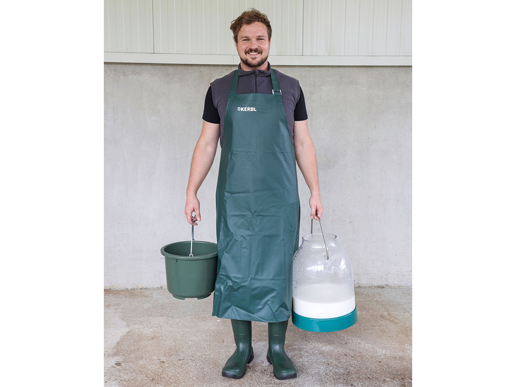 Fartuch premium do dojenia i mycia, odpowiedni również do prac rolniczych, domowych i ogrodniczych, materiał wodoodporny, chroniący przed wilgocią i wodą, słup wody 10 000 mm, wyjątkowo odporny na rozdarcia i pęknięcia , odporność na wysokie temperatury od -30°C do +50°C, praktyczne zapięcie na szyi za pomocą regulowanej klamry, wykonany z elastycznego, wysokiej jakości materiału, bardzo łatwy do prania, wymiary 140x124 cm.