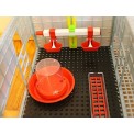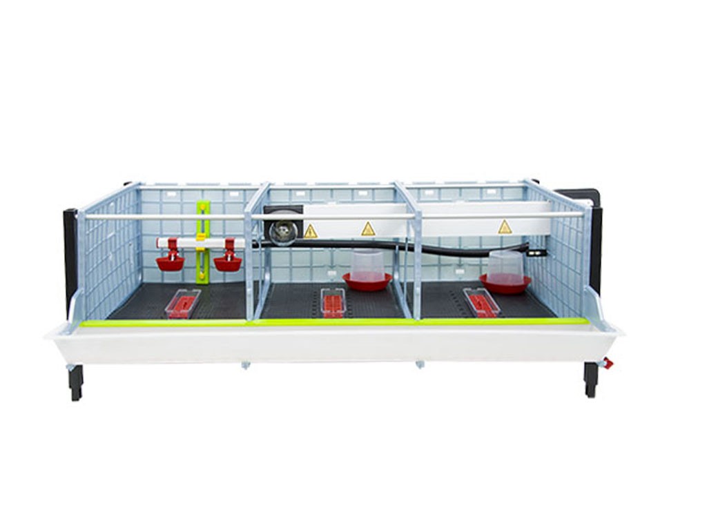 Kurnik do hodowli drobiu, odpowiedni do hodowli do 90 kurcząt, z opatentowaną technologią Comfortplast , o wymiarach 104 x 60 x 91 cm . Jest to dwupoziomowa klatka z 3 komorami , wyposażona w listwę grzewczą z regulowanym termostatem i wyjściem na żarówkę , karmniki z kratką zapobiegającą marnowaniu paszy oraz poidła z dopływem wody z 8-litrowego zbiornika .