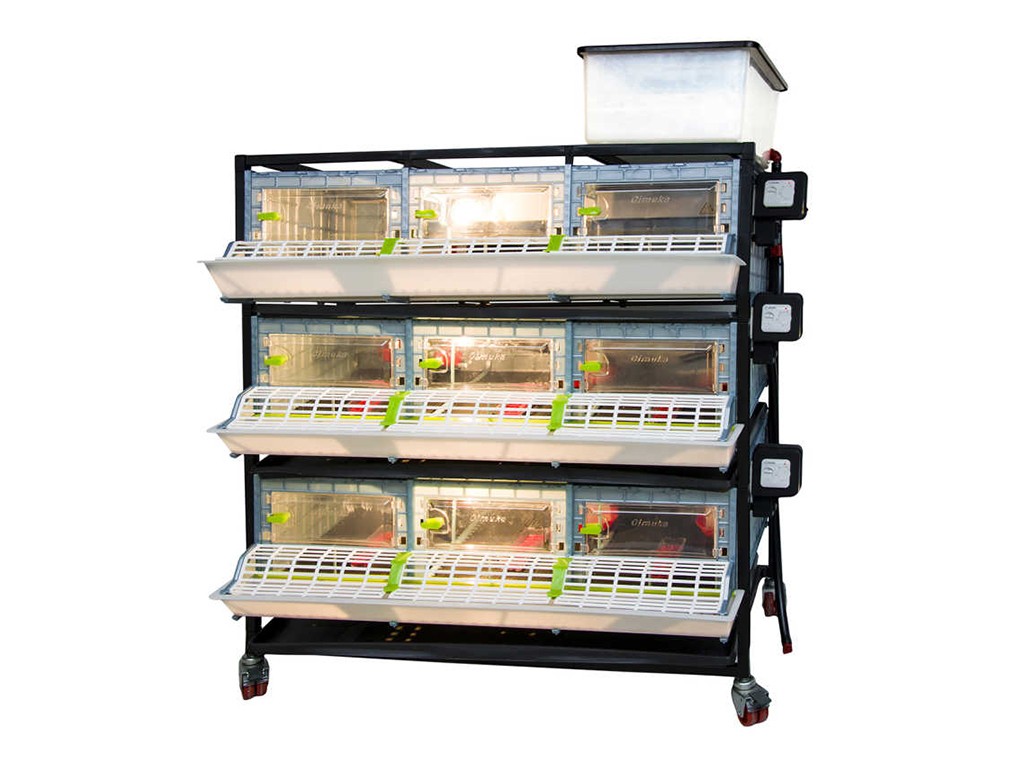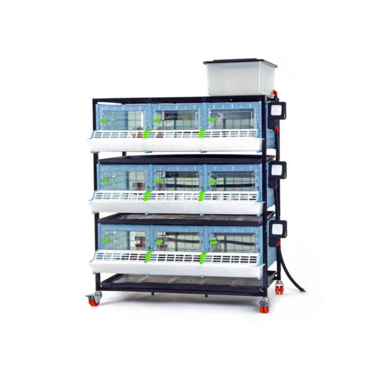Kurnik do hodowli drobiu, odpowiedni do hodowli od 120 do 135 kurcząt, z opatentowaną technologią Comfortplast , o wymiarach 104 x 60 x 132 cm . Klatka trzypoziomowa z trzema komorami , wyposażona w listwę grzewczą z regulowanym termostatem i wyjściem na żarówkę , karmniki z kratką zapobiegającą marnowaniu paszy oraz poidła z doprowadzeniem wody z 20-litrowego zbiornika .