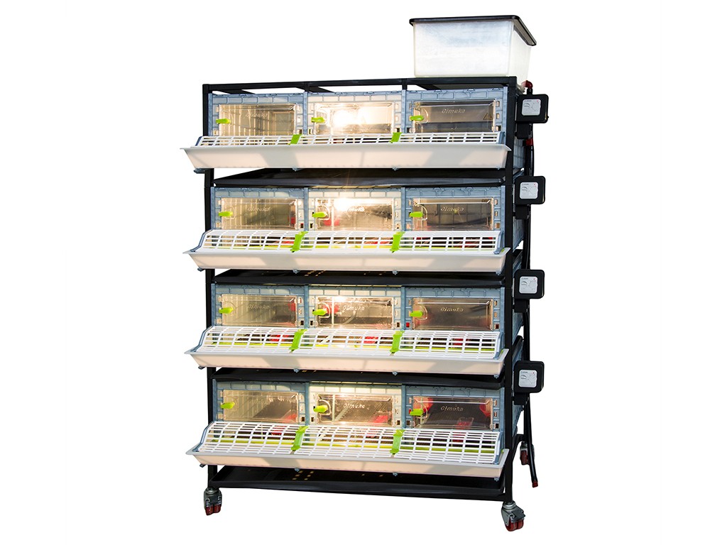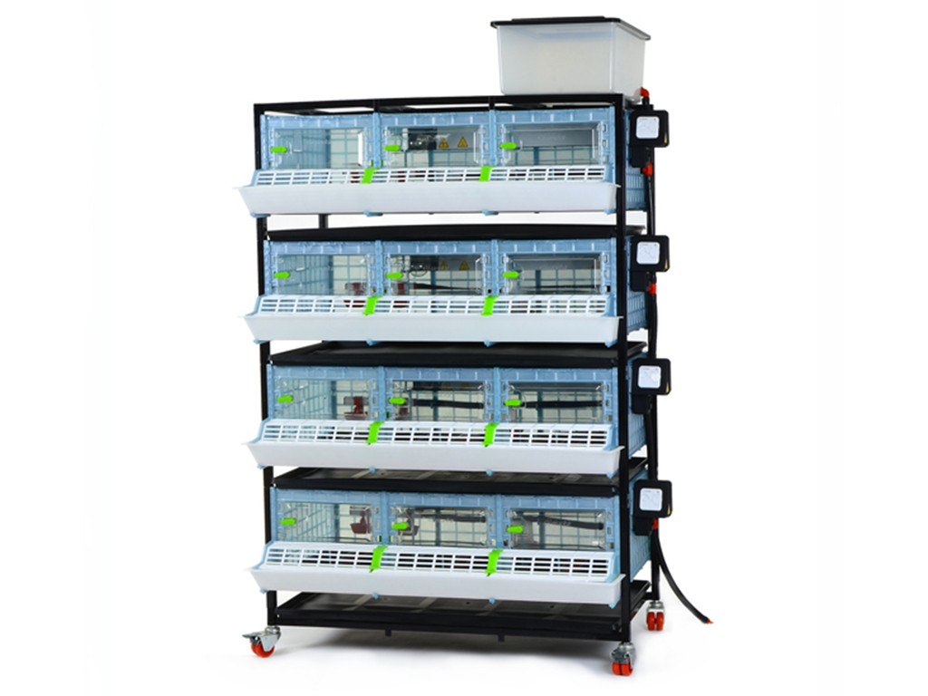 Kurnik do hodowli drobiu, odpowiedni do hodowli od 160 do 180 kurcząt, z opatentowaną technologią Comfortplast , o wymiarach 104 x 60 x 164 cm . Klatka 4-piętrowa z 3 komorami , wyposażona w listwę grzewczą z regulowanym termostatem i wyjściem na żarówkę , karmniki z kratką zapobiegającą marnowaniu paszy oraz poidła z dopływem wody z 20-litrowego zbiornika .
