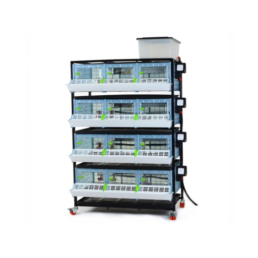 Kurnik wyposażony jest w dwa poidła w kształcie kapelusza na każdym piętrze na pierwsze dni życia piskląt oraz dwa poidła smoczkowe z regulacją wysokości , które zapewniają bezproblemowy i higieniczny sposób pojenia piskląt w klatce. Poidła smoczkowe posiadają również dodatkowe miseczki na wodę , które tworzą wysokiej jakości poidła automatyczne i zapobiegają ich zamoczeniu przez pisklęta. Woda do poideł automatycznych jest dostarczana z przezroczystego zbiornika za pomocą systemu węży. Zbiornik zapewnia doskonały podgląd aktualnego poziomu wody , a jego pokrywa chroni wodę przed zanieczyszczeniem i umożliwia łatwe uzupełnianie w razie potrzeby.