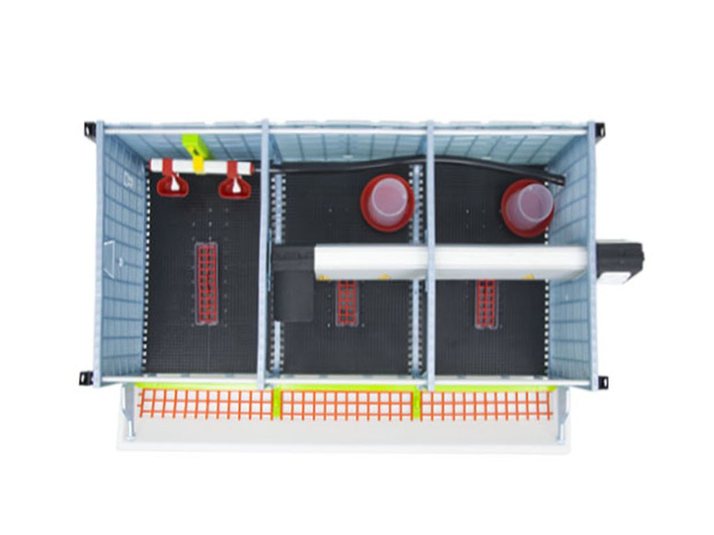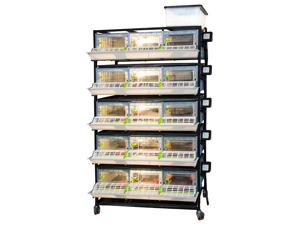 Kurnik do hodowli drobiu, odpowiedni do hodowli od 200 do 225 kurcząt, z opatentowaną technologią Comfortplast , o wymiarach 104 x 60 x 196 cm . Jest to 5-piętrowa klatka z 3 komorami , wyposażona w listwę grzewczą z regulowanym termostatem i wyjściem na żarówkę , karmniki z kratką zapobiegającą marnowaniu paszy oraz poidła z dopływem wody z 20-litrowego zbiornika .
