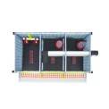 Wymiary złożonej , pięciopiętrowej hodowli, wliczając koła, zbiornik na wodę, elementy grzewcze i karmniki, wynoszą 104 x 60 x 196 cm.