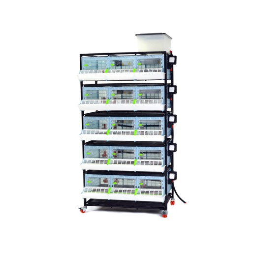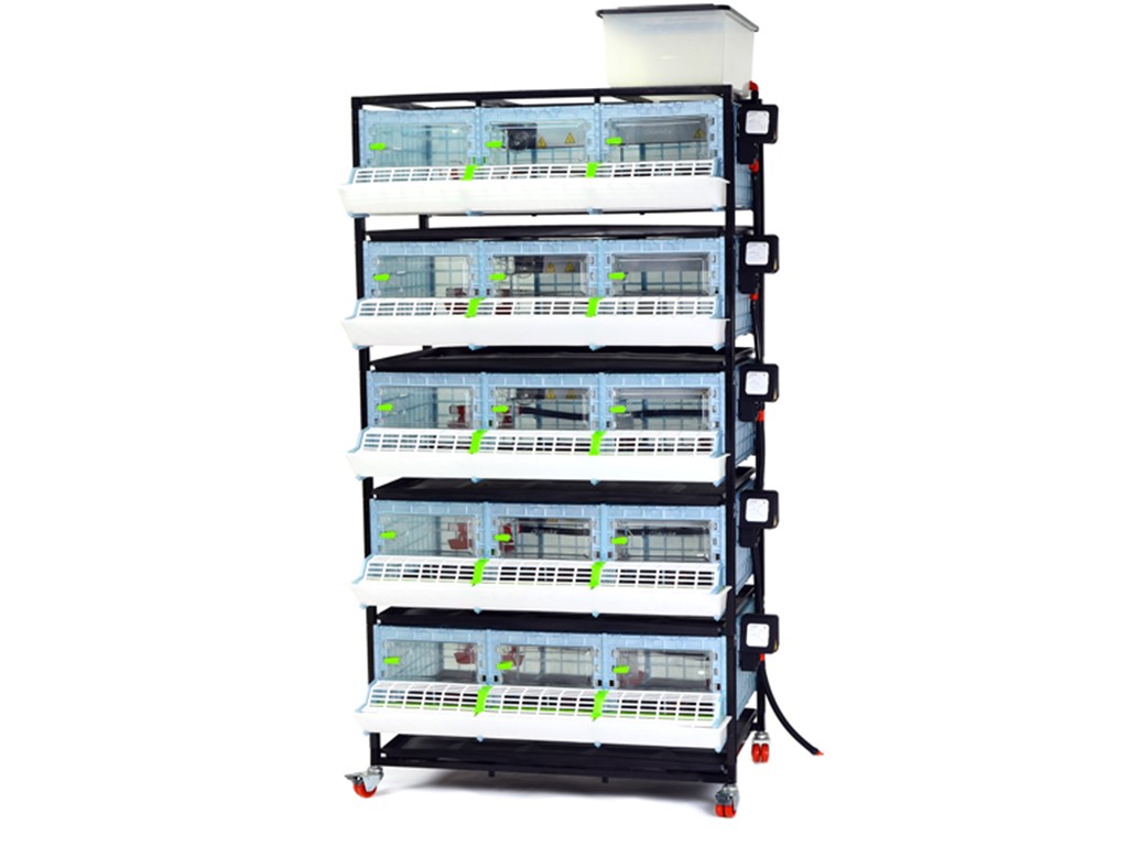 Kurnik wyposażony jest w dwa poidła w kształcie kapelusza na każdym piętrze na pierwsze dni życia piskląt oraz dwa poidła smoczkowe z regulacją wysokości , które zapewniają bezproblemowy i higieniczny sposób pojenia piskląt w klatce. Poidła smoczkowe posiadają również dodatkowe miseczki na wodę , które tworzą wysokiej jakości poidła automatyczne i zapobiegają ich zamoczeniu przez pisklęta. Woda do poideł automatycznych jest dostarczana z przezroczystego zbiornika za pomocą systemu węży. Zbiornik zapewnia doskonały podgląd aktualnego poziomu wody , a jego pokrywa chroni wodę przed zanieczyszczeniem i umożliwia łatwe uzupełnianie w razie potrzeby.