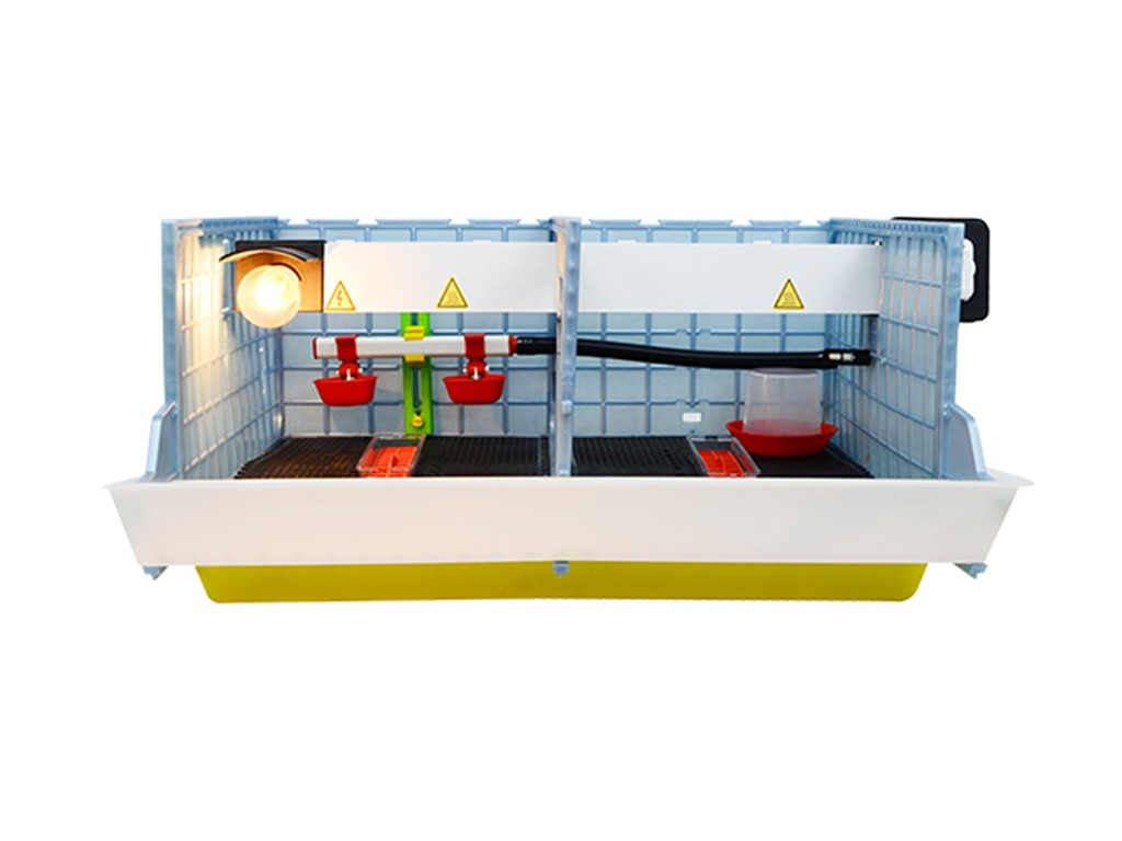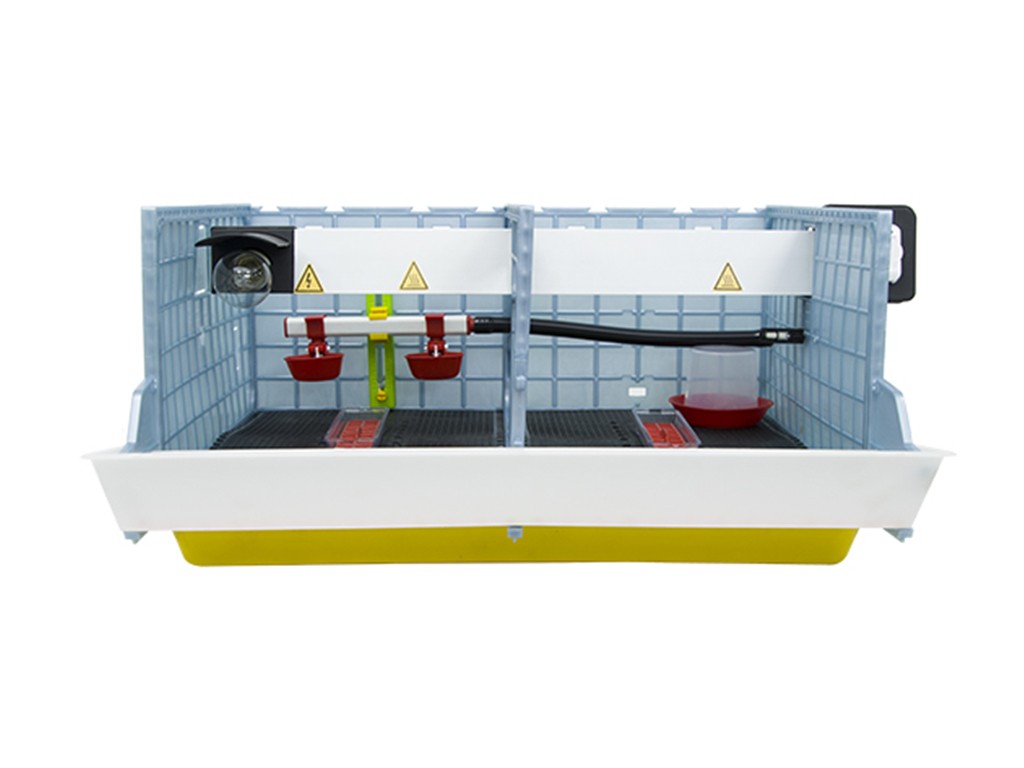 Kurnik do hodowli drobiu, odpowiedni do hodowli od 25 do 30 kurcząt, z opatentowaną technologią Comfortplast , o wymiarach 72 x 62 x 50 cm . Jest to klatka parterowa z 2 komorami , wyposażona w listwę grzewczą z regulowanym termostatem i wyjściem na żarówkę , karmniki z kratką zapobiegającą marnowaniu paszy oraz poidła z dopływem wody z 4-litrowego zbiornika .