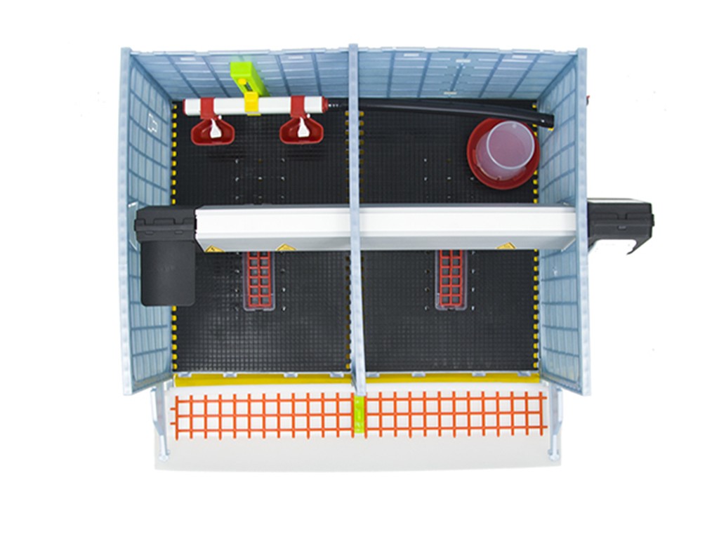 W zestawie znajdują się dwie przenośne miski na pierwsze dni życia piskląt , a kurnik jest również wyposażony w wiszący karmnik o dużej pojemności, zapewniający zapas karmy na nawet 2 dni dla każdego pisklęcia. Karmniki wykonane są z wysokiej jakości tworzywa sztucznego, odpornego na uderzenia i bardzo łatwego w utrzymaniu . Dodatkowo karmniki wyposażone są w specjalną kratkę , która zapobiega rozgrzebywaniu karmy przez pisklęta, zapobiegając tym samym jej marnowaniu . Kratka została zaprojektowana z myślą o zachowaniu odpowiedniej swobody ruchu podczas pobierania karmy.