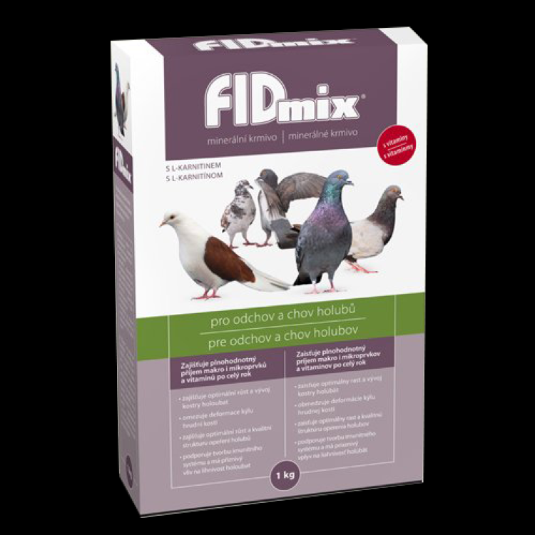 FIDmix to pasza mineralno-witaminowa opracowana specjalnie dla gołębi hodowlanych i odchowu. Zawiera kompletny kompleks witamin, minerałów i aminokwasów, które wspierają zdrowie gołębi i poprawiają ich zdolności rozrodcze. Dodatkowo wzbogacona jest L-karnityną, która zwiększa wydolność lotową gołębi.