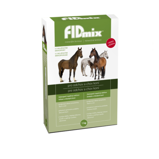 FIDmix® to pasza mineralno-witaminowa dla koni w każdym wieku. U źrebiąt zapewnia prawidłowy rozwój szkieletu, ścięgien i sierści. U koni dorosłych FIDmix® zwiększa witalność, zapewnia dobre zdrowie, rozród, kondycję i wysoką wydajność. Starszym koniom zapewnia łatwy dostęp do witamin, makroelementów, mikroelementów i aminokwasów. FIDmix® przyczynia się również do prawidłowego przebiegu ciąży i laktacji u klaczy. Zawiera wszystkie niezbędne witaminy i minerały w optymalnej dawce, aby uzupełnić i zbilansować ich dzienne zapotrzebowanie.
