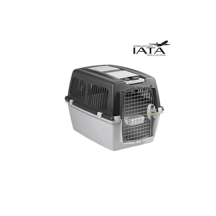 Oryginalna, duża klatka Gulliver MEGA z plastikowym transporterem to wysokiej jakości transporter dla psa z metalowymi drzwiczkami . Ten transporter posiada atest Międzynarodowego Zrzeszenia Przewoźników Powietrznych (IATA) do przewozu w samolocie.