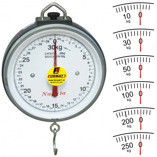 Prosta, dokładna i niezawodna mechaniczna waga wisząca. Bardzo duża, podwójna tarcza (268 mm) po obu stronach wagi. Solidna konstrukcja.