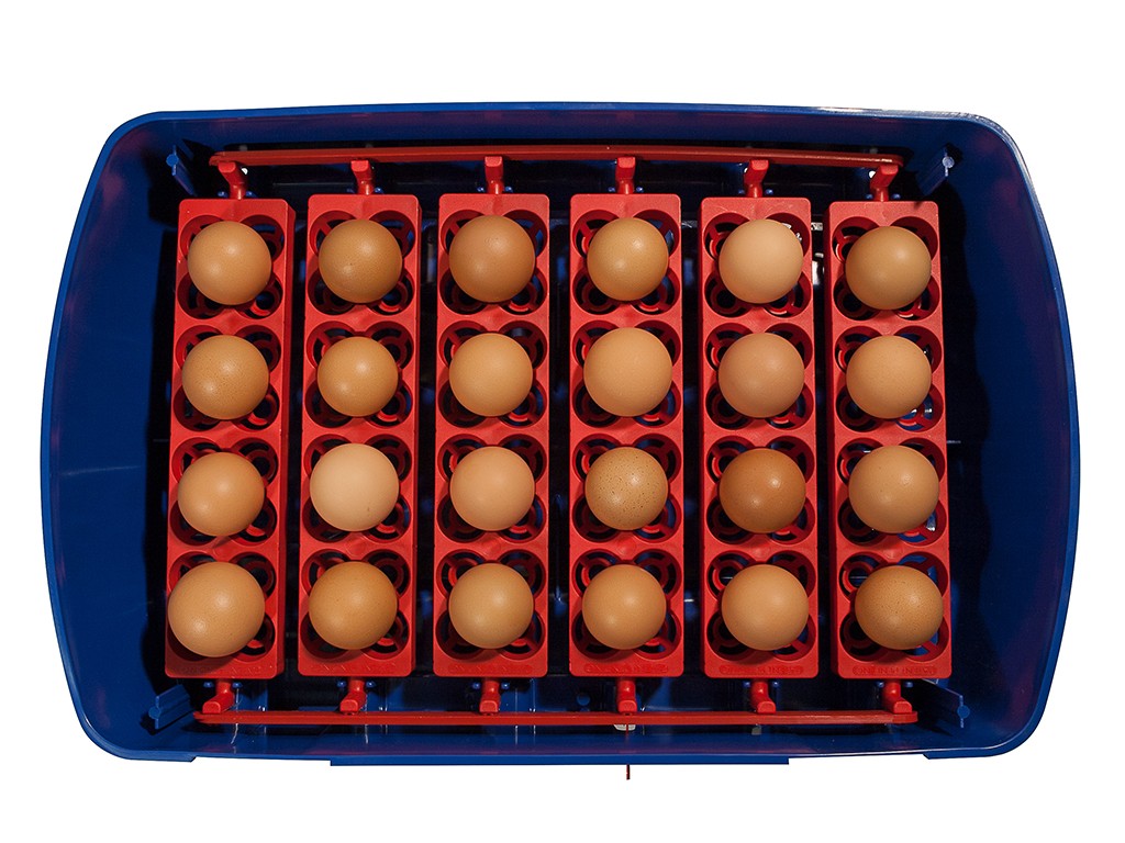 Pojemność z obrotowym rusztem: 24 jaja kurze, 96 przepiórczych, 24 gęsie, 24 kacze lub 24 bażantowe.