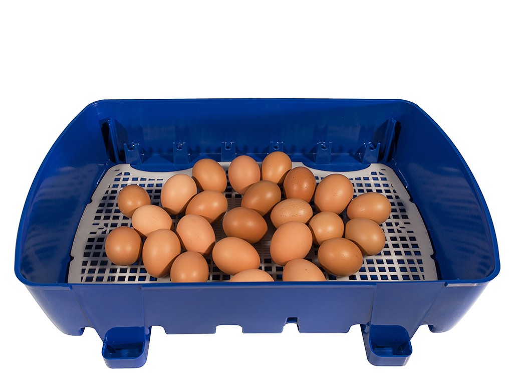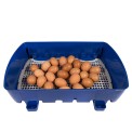 Inkubator oferuje możliwość półautomatycznego obracania jaj za pomocą dźwigni , która poprzez ruch ręką obraca jaja umieszczone w obracającej się siatce zgodnie z Twoimi preferencjami, najlepiej w regularnych odstępach czasu - przynajmniej rano i wieczorem. Obrotowa siatka jest wyposażona w unikalne prasy odpowiednie dla wszystkich rozmiarów jaj ptactwa wodnego i drobiu ryjącego . W razie potrzeby możliwe jest również ręczne obracanie jaj w inkubatorze (ręcznie) poprzez pociągnięcie dźwigni i wyjęcie obrotowej siatki z inkubatora i umieszczenie jaj bezpośrednio na siatce - podstawie do wylęgu. Standardowo ta siatka jest używana tylko przez ostatnie 2-3 dni inkubacji , kiedy jaja są wyjmowane z obrotowej siatki i umieszczane na tej siatce, gdzie nie są już obracane, tak aby zarodek mógł znaleźć najdogodniejszą drogę wyjścia ze skorupki i pomyślnie wykluć się do drobiu.