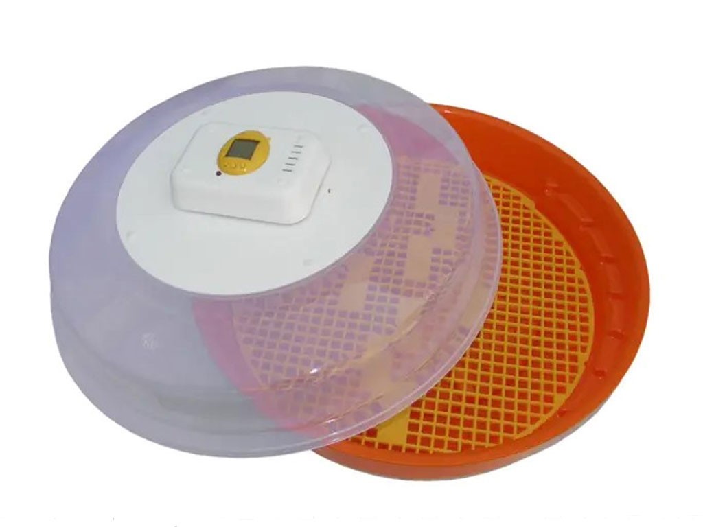 Inkubator do jaj przeznaczony do wylęgu ptactwa wodnego i głuszców - dla kur, przepiórek, kaczek, indyków, gęsi i bażantów, z ręcznym obracaniem jaj, pojemność 70 jaj kurzych - możliwość zakupu modułu obracającego, bez regulacji temperatury, ustawiony na optymalną wartość, z ręczną kontrolą wilgotności, z termometrem i higrometrem.