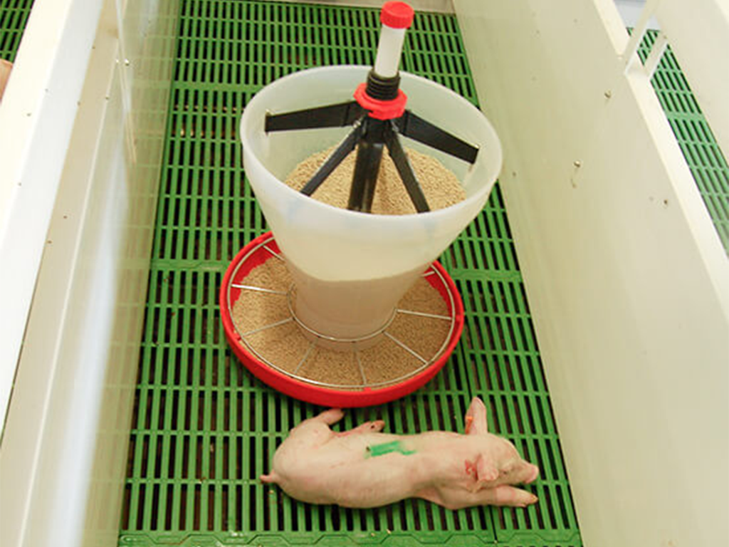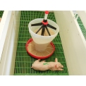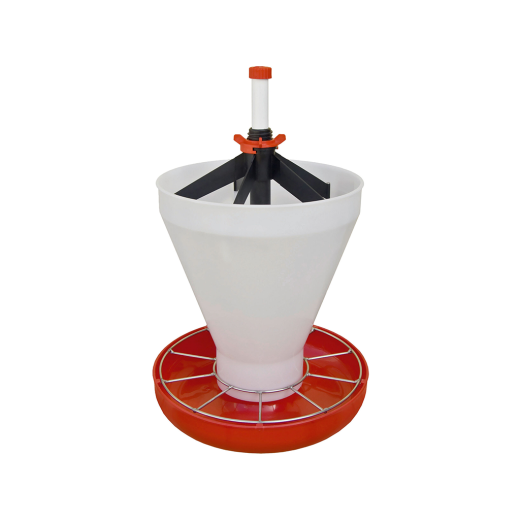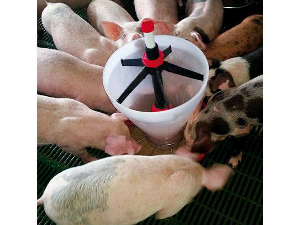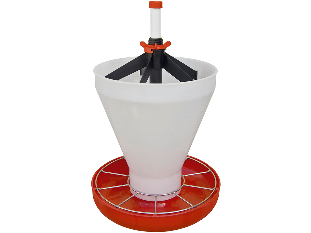 Automatyczny podajnik paszy z lejkiem, do karmienia prosiąt w okresie odsadzania, proste mocowanie do kratki , łatwa konserwacja, 10 stanowisk do karmienia, regulacja ilości paszy , pojemność miski 9 l, pojemność leja 21 l , średnica miski 42,5 cm, wysokość podajnika 68 cm.
