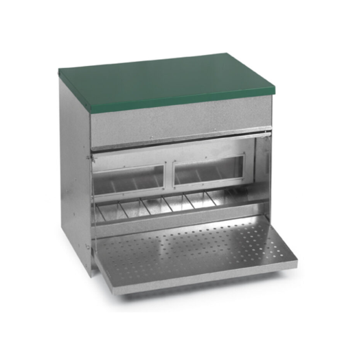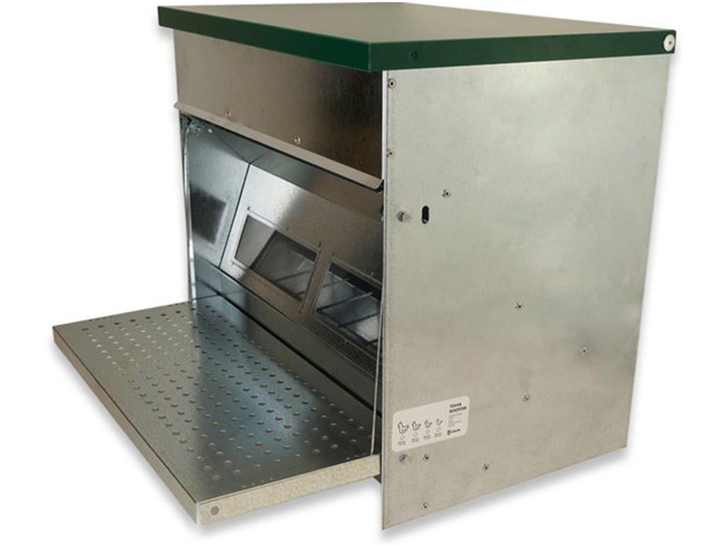 - Karmnik otwierany nogą pozwala ograniczyć zużycie karmy, ponieważ zapobiega jej marnowaniu i niepożądanemu karmieniu myszy, wróbli, turkawek itp.