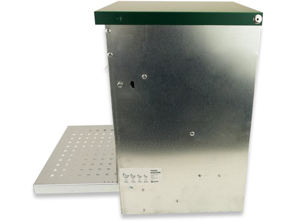 Z pokrywą i platformą schodkową, zasobnikiem 20 kg , z okienkiem, do 50 kur, wymiary: 450 x 470 x 420 mm.