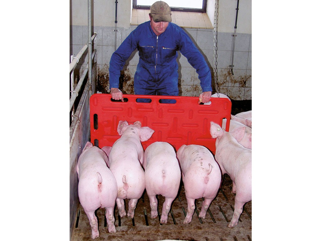 Bariera rozdzielająca i kontrolująca dla świń , wykonana z wysokiej jakości materiału, uchwytna na szerokość i wysokość, zapobiega przenoszeniu bakterii, wymiary 126x76x2,5 cm.