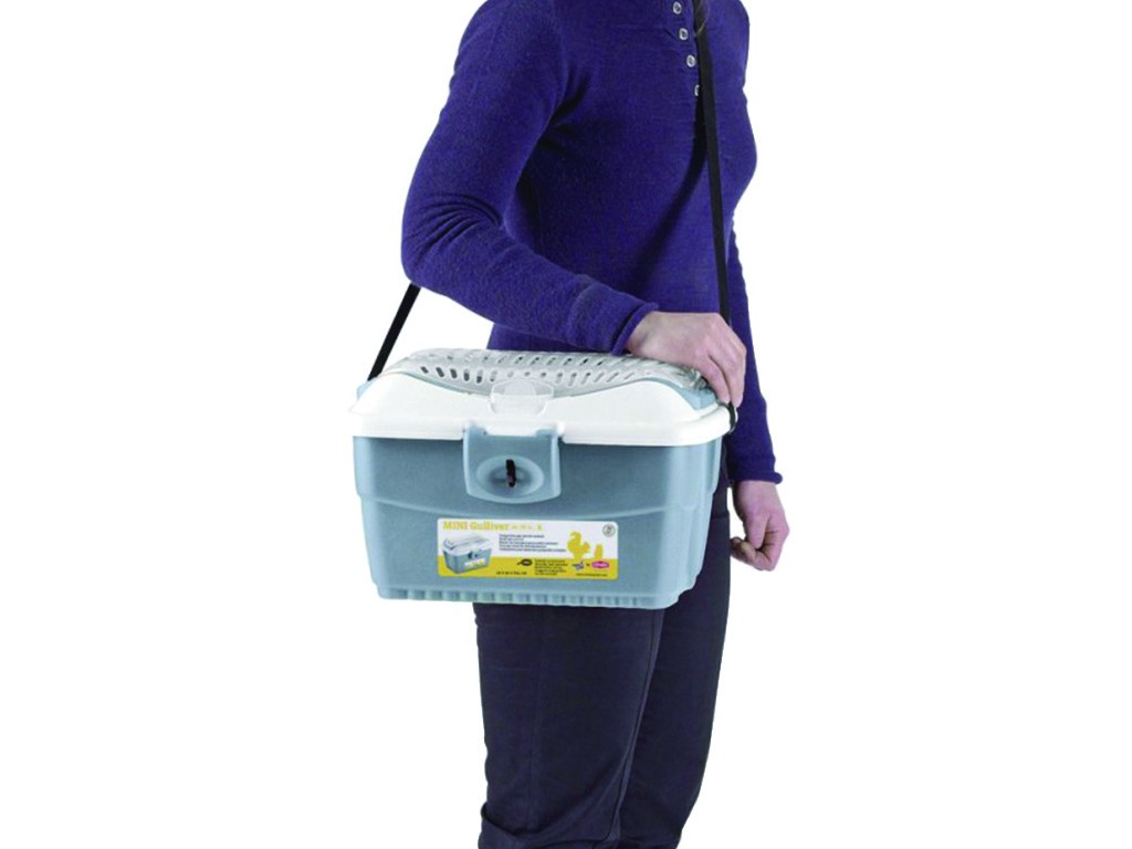 Dla łatwego przenoszenia, na górze klatki znajdują się dwa praktyczne uchwyty , a w zestawie znajduje się również pasek na ramię. Praktyczne okienka z daszkami w górnej, przezroczystej pokrywie zapewniają odpowiednią cyrkulację powietrza.