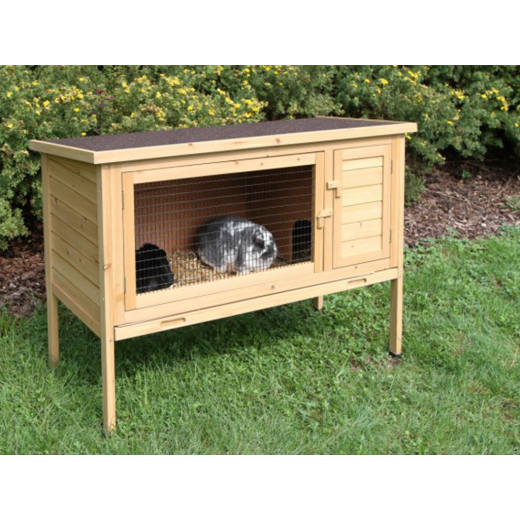 Drewniana klatka dla królika waży około 15 kg. Dach klatki pokryty jest wodoodpornym materiałem ochronnym. Zalecamy jednak umieszczenie klatki pod zadaszeniem , aby chronić ją przed deszczem, śniegiem i intensywnym nasłonecznieniem. Zimą zalecamy przeniesienie klatki w cieplejsze miejsce. Drewniana klatka dla królika jest zabezpieczona podstawową powłoką ochronną. Aby przedłużyć jej żywotność, powłokę ochronną należy odnawiać, tak jak w przypadku każdego drewna.