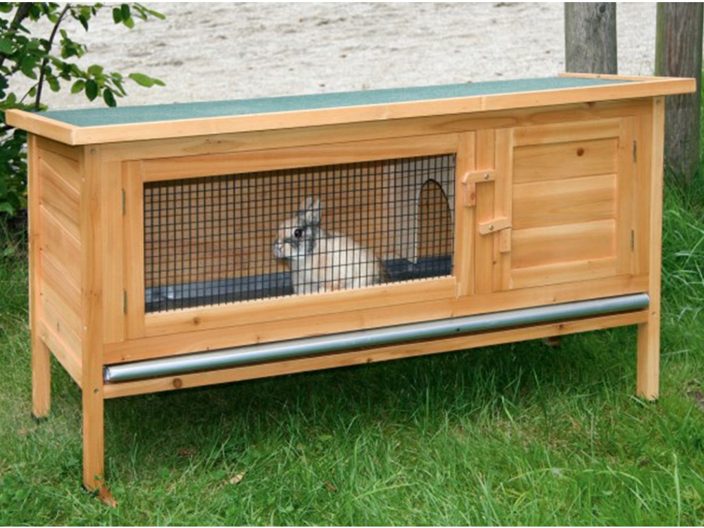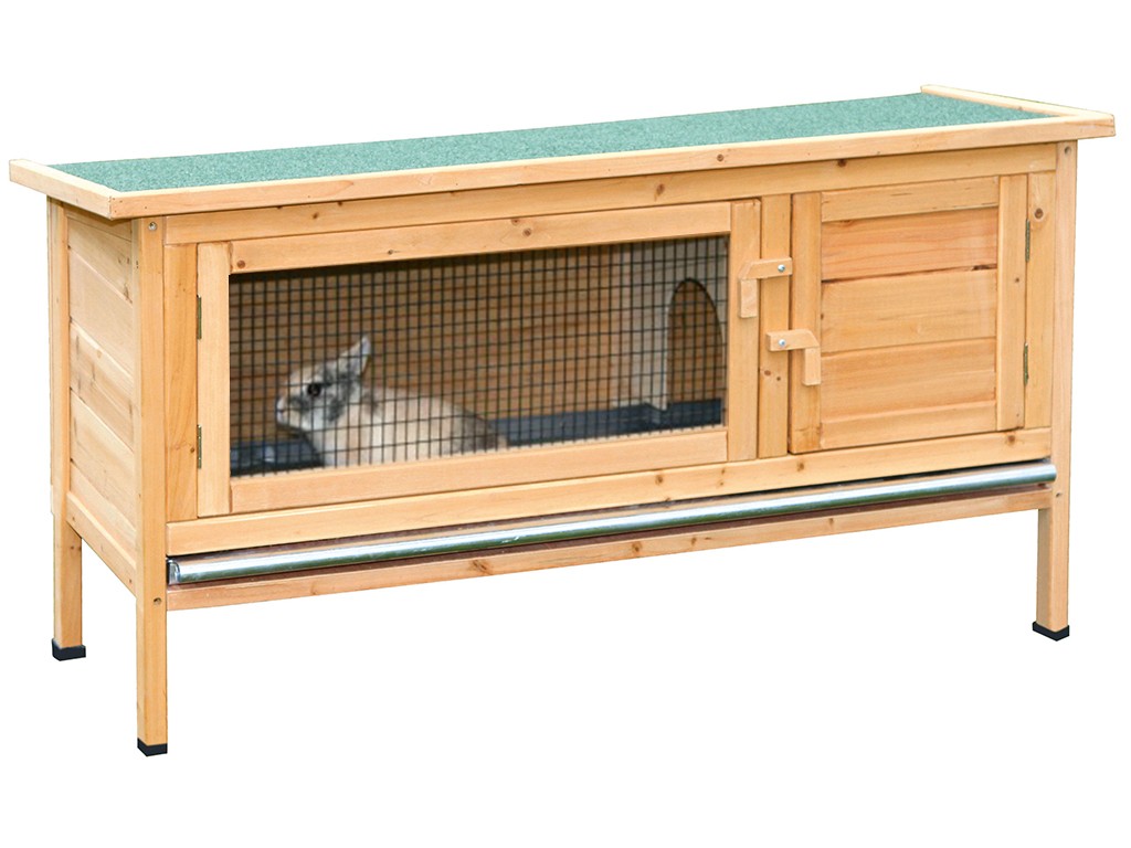 Drewniana klatka dla królika, królika miniaturowego lub innego małego gryzonia o wymiarach 116x45x62 cm. Idealna klatka dla królika, wyposażona w wyjmowaną kuwetę. Łatwe czyszczenie. Dwoje drzwi i uchylny dach zapewniają bezproblemowy dostęp do klatki dla królików .