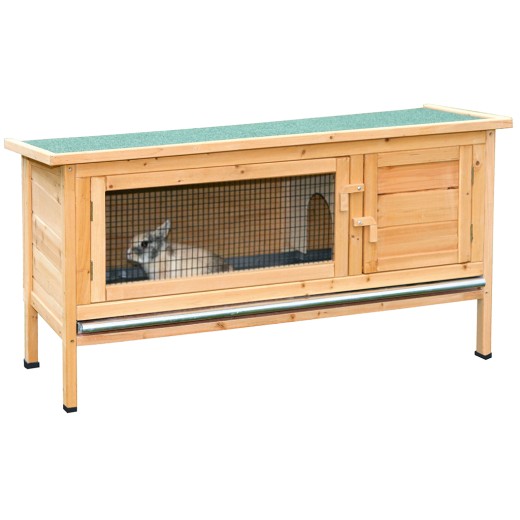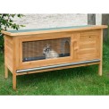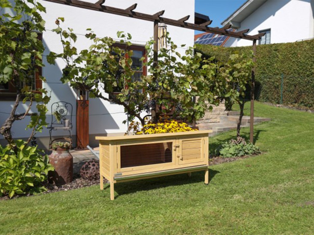 Drewniana klatka dla królika waży około 15 kg. Dach klatki pokryty jest wodoodpornym materiałem ochronnym. Zalecamy jednak umieszczenie klatki pod zadaszeniem , aby chronić ją przed deszczem, śniegiem i intensywnym nasłonecznieniem. Zimą zalecamy przeniesienie klatki w cieplejsze miejsce. Drewniana klatka dla królika jest zabezpieczona podstawową powłoką ochronną. Aby przedłużyć jej żywotność, powłokę ochronną należy odnawiać, tak jak w przypadku każdego drewna.