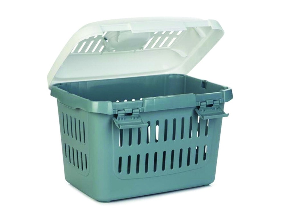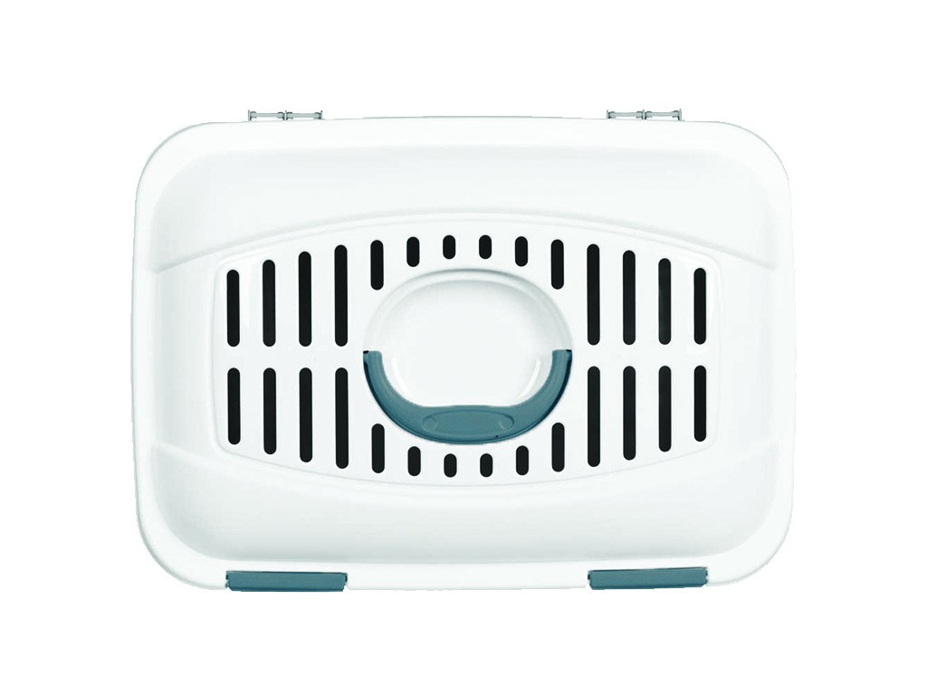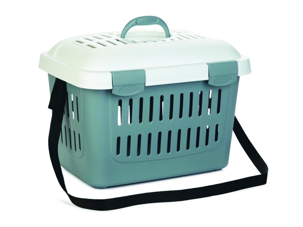 Dla królików, kotów i psów do 5 kg, pokrywa na zawiasach z dwoma klipsami, pokrywa i ścianki z otworami wentylacyjnymi, uchwyt i pasek ułatwiający przenoszenie , wymiary wewnętrzne 42x28x31 cm, wymiary zewnętrzne 45x33x33 cm.