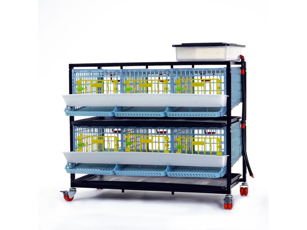 Klatka dla przepiórek, przeznaczona do hodowli od 36 do 60 osobników, z opatentowaną technologią Comfortplast , o wymiarach 98 x 62 x 91 cm . Klatka dwupoziomowa z 6 przegrodami , wyposażona we własną tackę do znoszenia jaj przepiórczych, karmnik z kratką zapobiegającą marnowaniu paszy oraz poidło z 8-litrowym zbiornikiem na wodę . Klatki wykonane są z tworzywa sztucznego o wysokiej odporności na odchody przepiórek i bakterie – bardzo łatwa konserwacja klatki i odchodów. Możliwość rozbudowy o dodatkowe poziomy (maks. 5 poziomów), łatwa obsługa dzięki kółkom z hamulcami.
