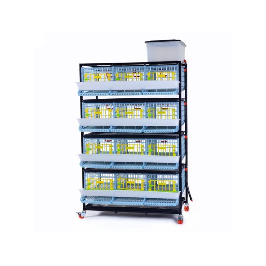 Klatka dla przepiórek, przeznaczona do hodowli od 72 do 120 osobników, z opatentowaną technologią Comfortplast , o wymiarach 98 x 62 x 164 cm . Klatka jest 4-poziomowa i składa się z 12 przegródek . Każda z nich wyposażona jest w tackę do znoszenia jaj przepiórczych, karmnik z kratką zapobiegającą marnowaniu paszy oraz poidło z 20-litrowym zbiornikiem na wodę . Klatki wykonane są z tworzywa sztucznego o wysokiej odporności na odchody przepiórek i bakterie, co zapewnia łatwą konserwację klatki i odchodów. Możliwość rozbudowy o kolejne piętro (maks. 5 poziomów), łatwa obsługa dzięki kółkom z hamulcami.