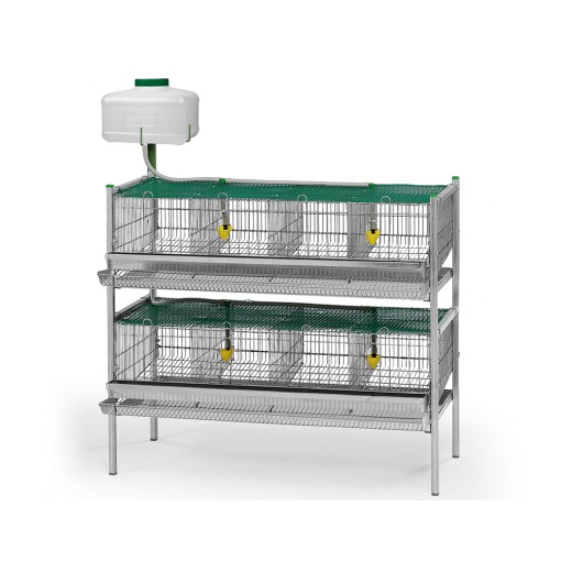 Klatka dla przepiórek o wymiarach 104,5 x 58,5 x 90 cm, przeznaczona do hodowli od 40 do 48 przepiórek . Jest to dwupiętrowa klatka z 8 przegrodami , wyposażona w tacki do znoszenia jaj przepiórczych, karmnik i poidła z doprowadzeniem wody z 8-litrowego zbiornika.