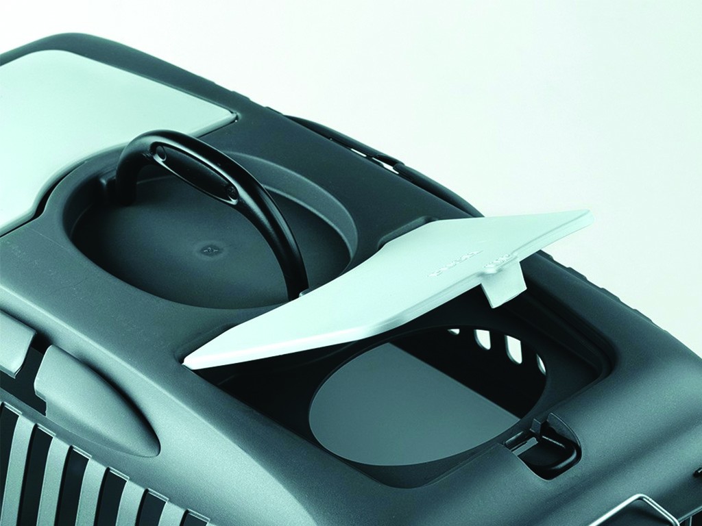 Dla psów i kotów o wadze do 8 kg, pokrywa i pojemnik połączone klipsami, metalowe przednie drzwi z blokadą, regulowane prawe lub lewe otwieranie drzwi , uchwyt ułatwiający przenoszenie klatki, pudełko do przechowywania na górze klatki, zamykany otwór do przenoszenia na górze klatki, dwa uchwyty na pasy bezpieczeństwa samochodowego , miska 500 ml z krawędziami zapobiegającymi rozlewaniu, wymiary wewnętrzne 51,5 x 32,5 x 30 cm, wymiary zewnętrzne 55 x 36 x 35 cm.