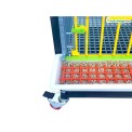 Wymiary złożonej dwupiętrowej klatki dla drobiu, łącznie z kołami, zbiornikiem na wodę i karmnikami, wynoszą 98 x 60 x 119 cm.