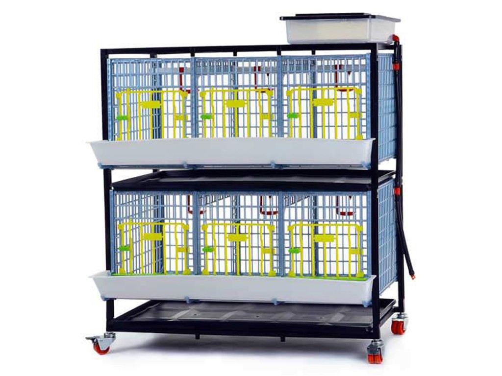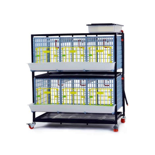 Klatka do hodowli kurczaków, przepiórek i innego drobiu o wymiarach 98 x 60 x 119 cm. Jest to klatka dwupoziomowa , wyposażona w karmnik z kratką zapobiegającą marnowaniu paszy oraz poidło z dopływem wody z 8-litrowego zbiornika . Klatki wykonane są z tworzywa sztucznego o wysokiej odporności na odchody i bakterie, co zapewnia bardzo łatwą konserwację klatki i usuwanie odchodów. Możliwość rozbudowy o dodatkowe poziomy (maks. 4 poziomy), łatwa w transporcie dzięki kółkom z hamulcami.