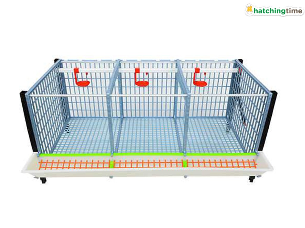 Klatka do hodowli kurczaków, przepiórek i innego drobiu o wymiarach 96 x 60 x 48 cm. Jest to jednopiętrowa dodatkowa klatka bez ramy , wyposażona w karmnik z kratką zapobiegającą marnowaniu pokarmu oraz poidło z dopływem wody bez zbiornika . Klatki wykonane są z tworzywa sztucznego o wysokiej odporności na odchody i bakterie – bardzo łatwa konserwacja klatki i usuwanie odchodów.