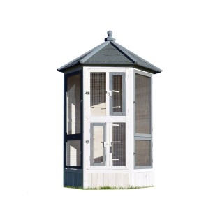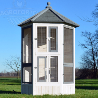 Woliera dla ptaków - MAXI - drewno lite, sześciokątna