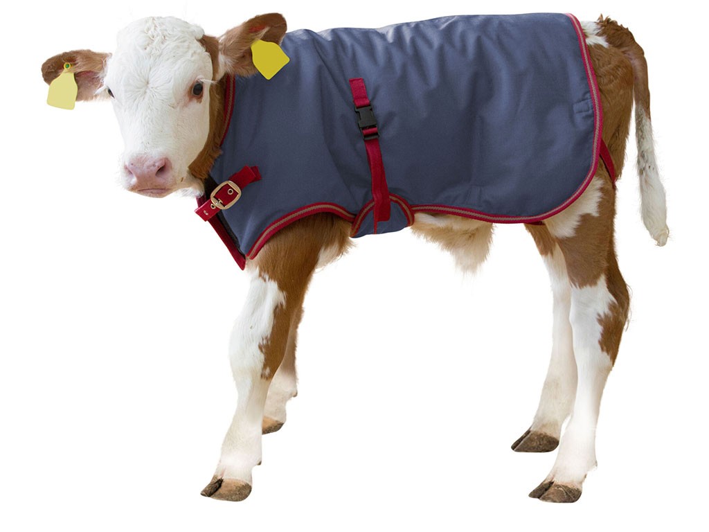 Kocyk termiczny dla cieląt, przeciwzimnowy , wypełnienie z polaru , anatomiczne zapięcie dookoła brzuch i klatka piersiowa, dodatkowe zapięcia na rzepy, na nagłe zmiany pogody, dla dzieci do 3-4 tygodnia życia, materiał hydrofobowy do 3000 mm, długość 80 cm.