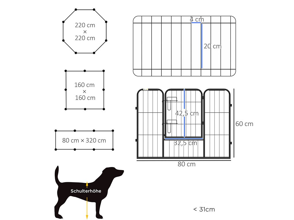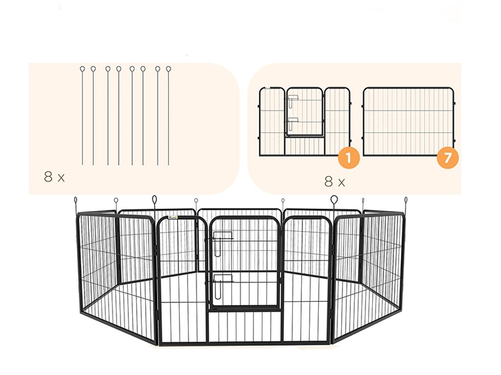 Kojec dla szczeniąt i innych zwierząt PAWHUT D06-107V02BK, 8 paneli, 80x60 cm