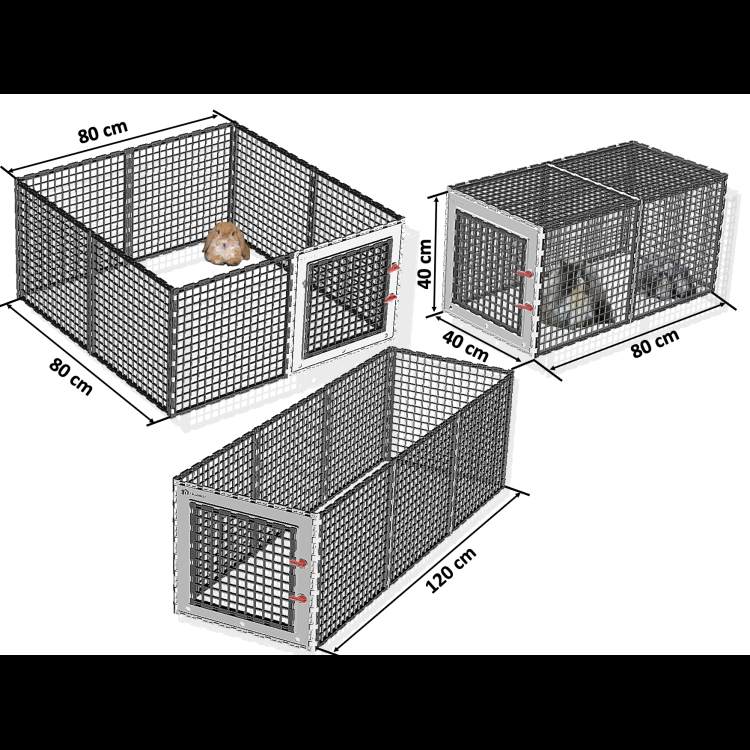 - Wszechstronne zastosowanie : Kojec nadaje się dla wszystkich gatunków zwierząt domowych, od małych gryzoni po większe zwierzęta, zarówno do użytku na zewnątrz, jak i w domu. Kojec można przekształcić w całkowicie zamkniętą klatkę w ciągu minuty.