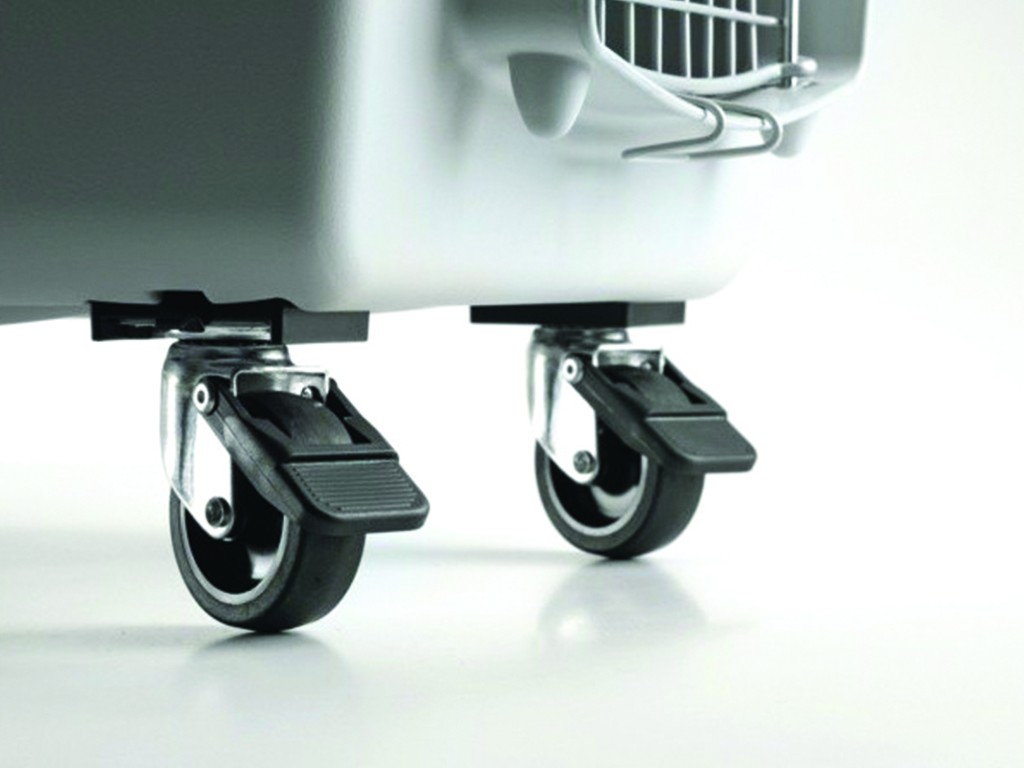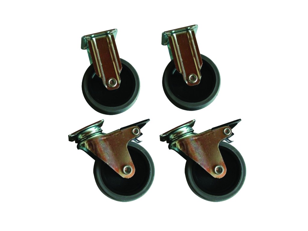 Zestaw kół do skrzyń transportowych GULLIVER 4, 5, 6, 7 i TOURING , gumowana powierzchnia antypoślizgowa , 2 koła obrotowe z hamulcami, łatwy montaż uchwytu kół zgodnie z instrukcją, koła można wyjąć z uchwytu i przechowywać.