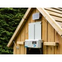 Zestaw do automatycznego otwierania/zamykania , rama z modułem i drzwiami zabezpieczającymi z prowadnicami, czujnik światła, timer, automatyczna kalibracja drzwi, czytelny wyświetlacz LCD, funkcja automatycznego zatrzymania w przypadku napotkania przeszkody, odpowiedni do pracy w temperaturach od -20°C do +60°C, zasilany 4 bateriami AA / zasilaczem 9 V / energią słoneczną, wymiary systemu: 31,5 x 70 cm, wymiary drzwi: 26 x 29 cm.