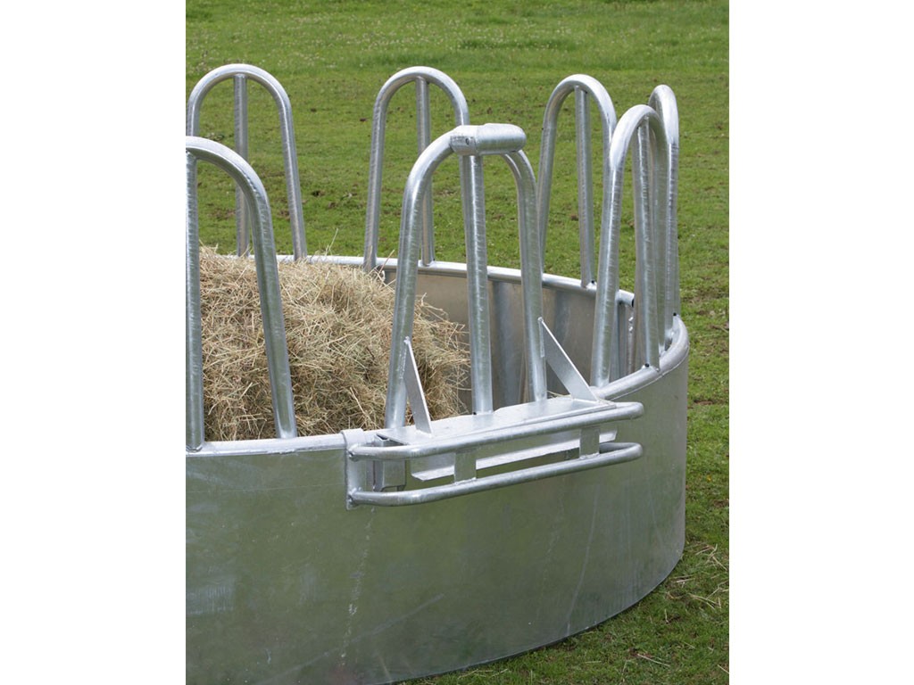 Koryto paszowe okrągłe, dla bydła i koni, 3-częściowe z 12 otworami , zaczep trzypunktowy, ocynkowane ogniowo , wysokość 116 cm, średnica wewnętrzna 219 cm, średnica zewnętrzna 236 cm.