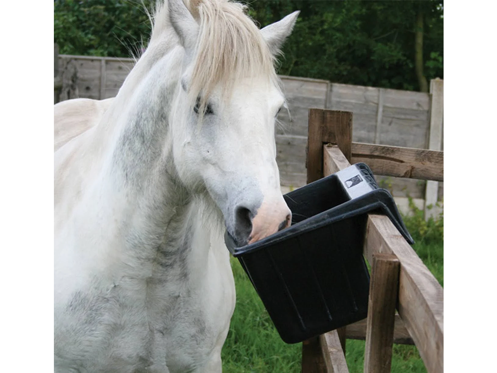 Wiszące koryto dla koni i bydła, wykonane z bardzo wytrzymałego materiału gumowego, idealne do stajni lub pastwisk , wiszące w urządzeniach o maks. grubości 50 mm , pojemność 20 litrów.