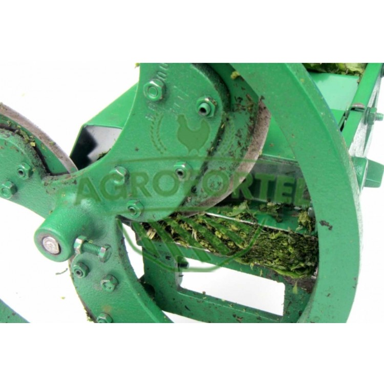 Trzyostrzowa kosiarka do pokrzyw i paszy z ręcznym napędem wirnika. Ostrza wykonane są ze stali węglowej i hartowane, wał ze stali klasy 11 109.