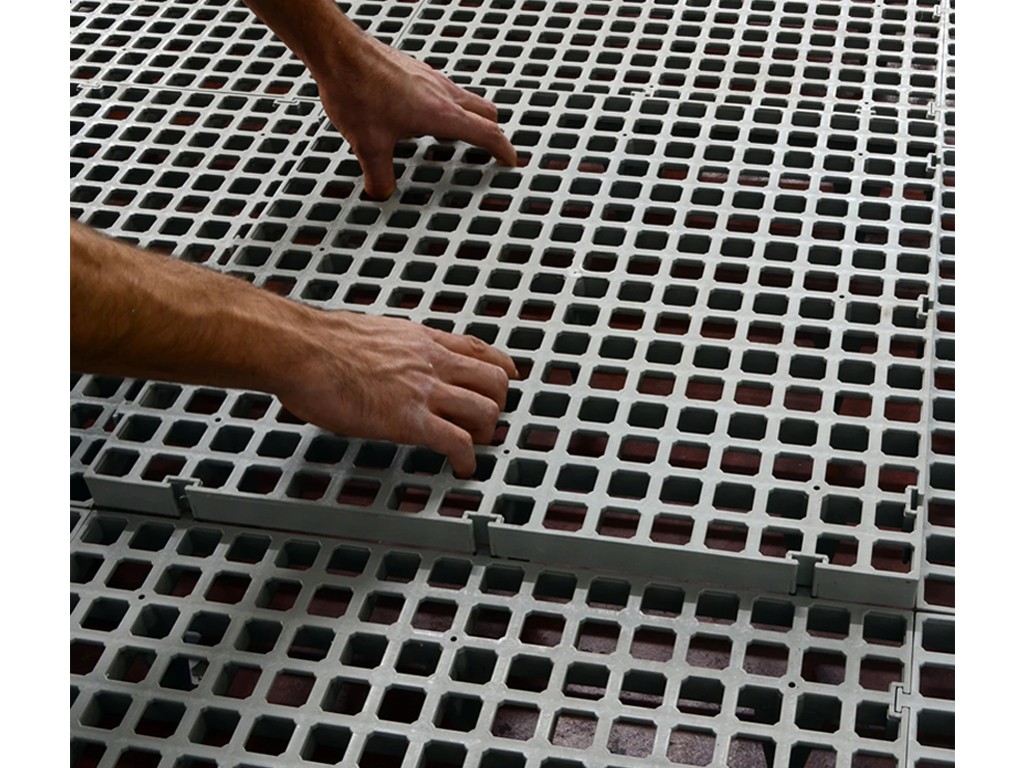 Ruszt podłogowy może być stosowany w kurnikach, klatkach dla królików, kurnikach, wolierach oraz wybiegach dla drobiu i innych zwierząt. Praktyczny ruszt podłogowy zapewnia higieniczne środowisko , ponieważ wszystkie odchody , woda i inne zanieczyszczenia spadają przez otwory . Zapewnia to czyste i suche środowisko dla zwierząt, a także dla Ciebie podczas ich pielęgnacji. Plastikowy ruszt podłogowy wspomaga również zdrowie racic drobiu .