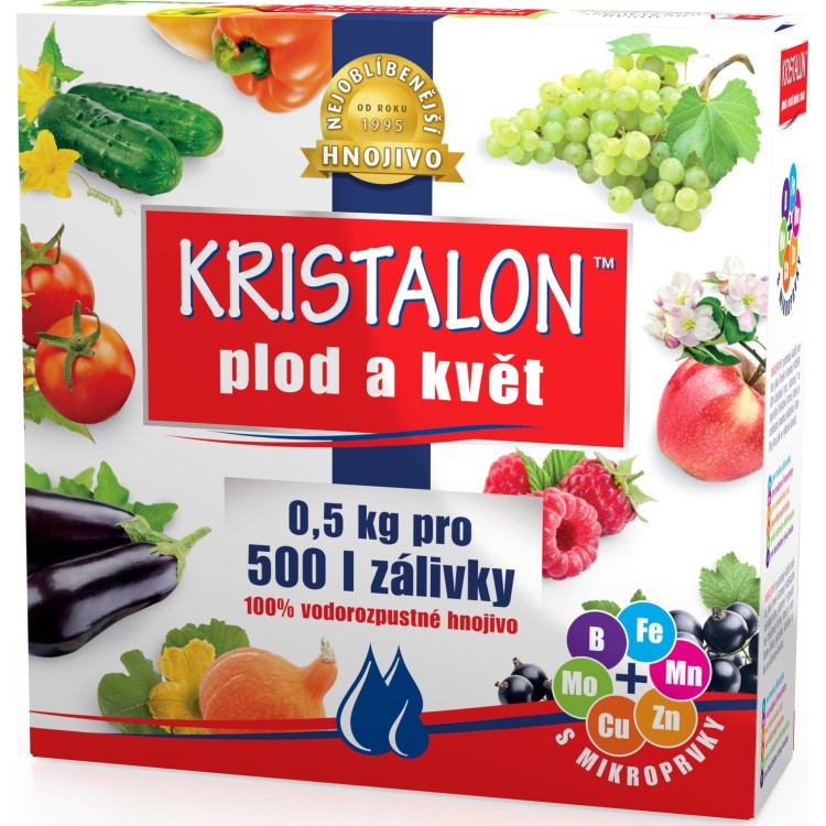 KRISTALON Fruit and Flower to doskonały, krystaliczny nawóz rozpuszczalny w wodzie, opracowany z myślą o szybszym rozpoczęciu okresu wegetacyjnego roślin. Wspiera on intensywniejszy wzrost pędów oraz wyraźniejsze wybarwienie kwiatów i owoców. Kristalon ma uniwersalne zastosowanie w uprawach owoców, warzyw, roślin ozdobnych, w tym balkonowych, drzew i krzewów owocowych oraz winorośli, zapobiegając jednocześnie żółknięciu liści. Opakowanie zawiera 0,5 kg, co wystarcza na 500 litrów podlewania.