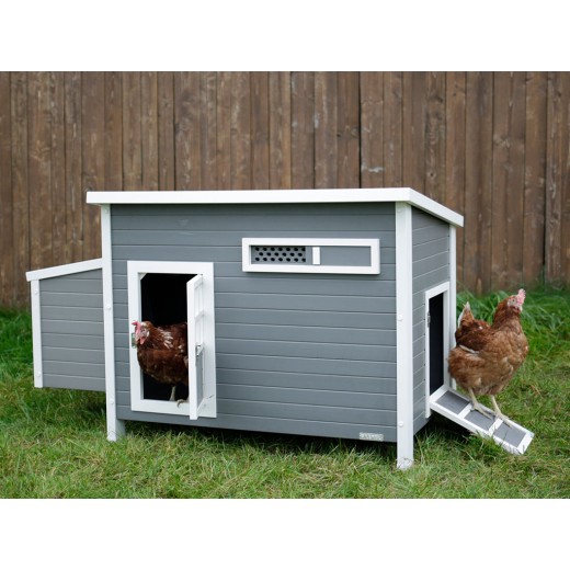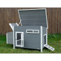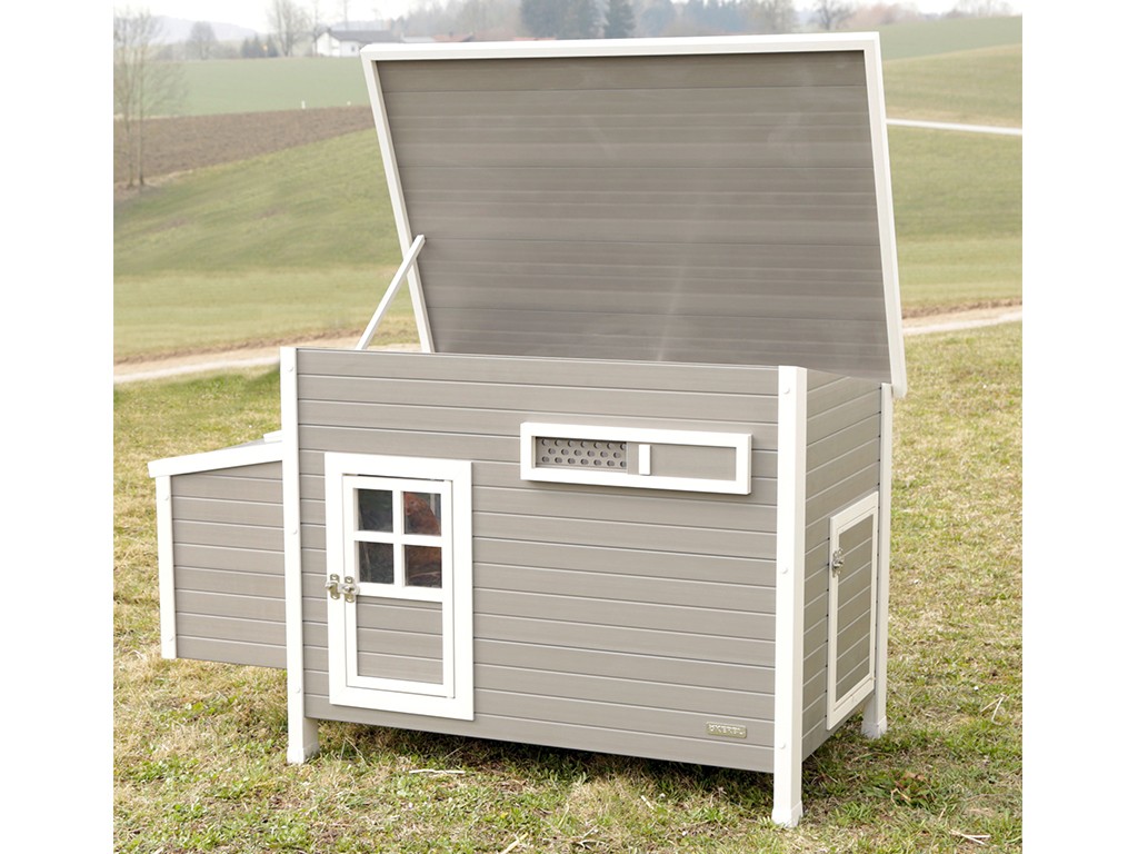Kurnik dla 4-6 kur o wymiarach 137x73x83 cm. Praktyczny kurnik, wyposażony w dwie grzędy , dwa zewnętrzne gniazda niosek oraz uchylny dach ułatwiający czyszczenie. Kurnik wykonany jest z ekologicznego materiału pochodzącego z recyklingu (60% plastiku i 40% drewna). Charakteryzuje się on tym, że nie odkształca się , nie pęka, nie pleśnieje i jest łatwy w czyszczeniu.