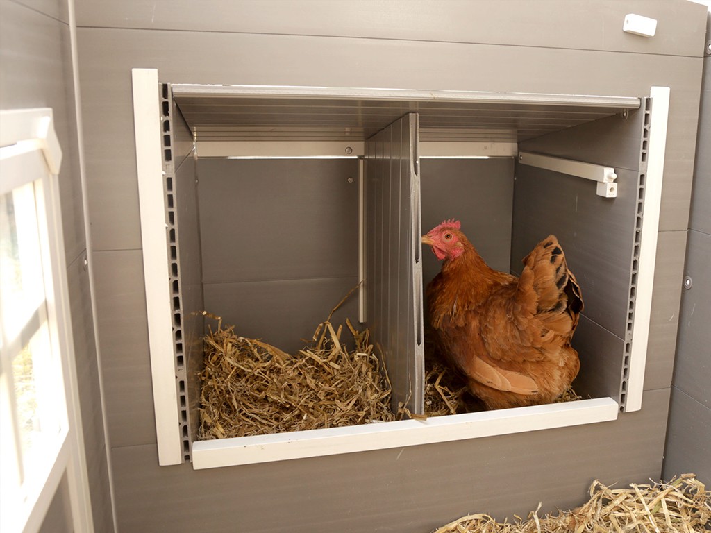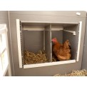 Kurnik wyposażony jest w dwie grzędy, na których kury mogą odpocząć w nocy. W kurniku znajdują się również dwie zewnętrzne grzędy , w których kury będą miały wystarczająco dużo miejsca i spokoju do znoszenia jaj. Zbieranie jaj będzie bardzo łatwe , ponieważ wystarczy podnieść dach gniazda , aby je zebrać .
