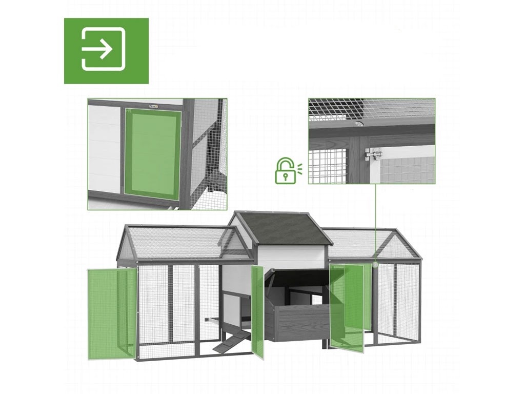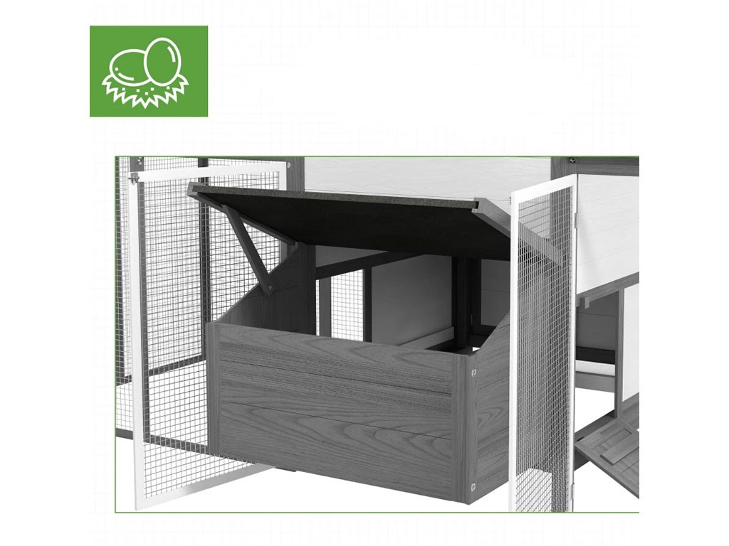 Kurnik z drewna jodłowego praktycznie nie wymaga konserwacji . Aby przedłużyć jego żywotność, powłokę ochronną należy odnawiać, jak w przypadku każdego drewna. Dzięki drzwiom kurnik można jednak szybko wyczyścić . Posiada również wysuwaną tackę na obornik , którą można po prostu wysunąć i wyczyścić.