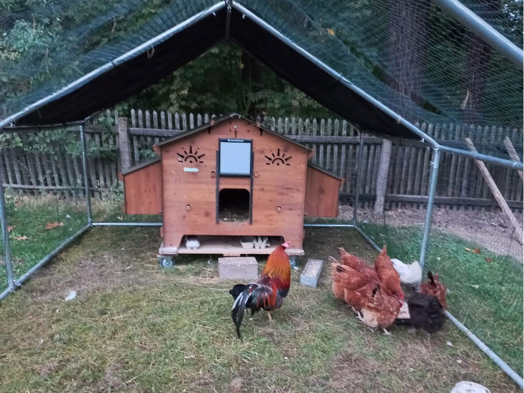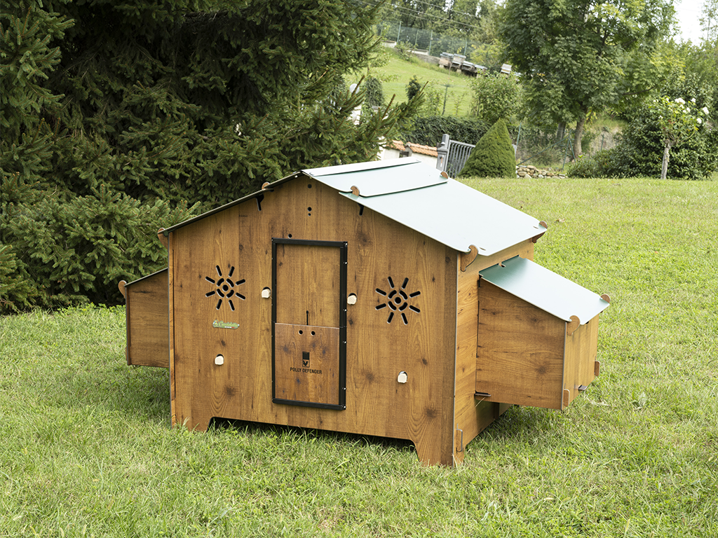 Kurnik wyposażony jest w cztery grzędy, na których kury mogą odpocząć w nocy. W kurniku znajdują się również cztery zewnętrzne grzędy , w których kury będą miały wystarczająco dużo miejsca i spokoju do znoszenia jaj. Zbieranie jaj będzie bardzo proste , ponieważ wystarczy podnieść dach gniazd , aby je zebrać . W zestawie znajdują się drzwi bezpieczeństwa Polly Defender , do których można łatwo podłączyć automatyczne otwieranie kurnika, jeśli jest to wymagane. Automatyczne otwieranie i zamykanie kurnika nie jest zawarte w zestawie!