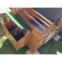 Kurnik do hodowli 15-20 kur o wymiarach 194x120x110 cm . To bardzo przestronny kurnik, wyposażony w cztery grzędy , cztery zewnętrzne gniazda niosek i uchylny dach . Kurnik wykonany jest z wysokiej jakości laminatu HPL, który jest niezwykle wytrzymały, gładki, łatwy w utrzymaniu i bardzo odporny na ataki różnych pasożytów , zwłaszcza trzmieli .