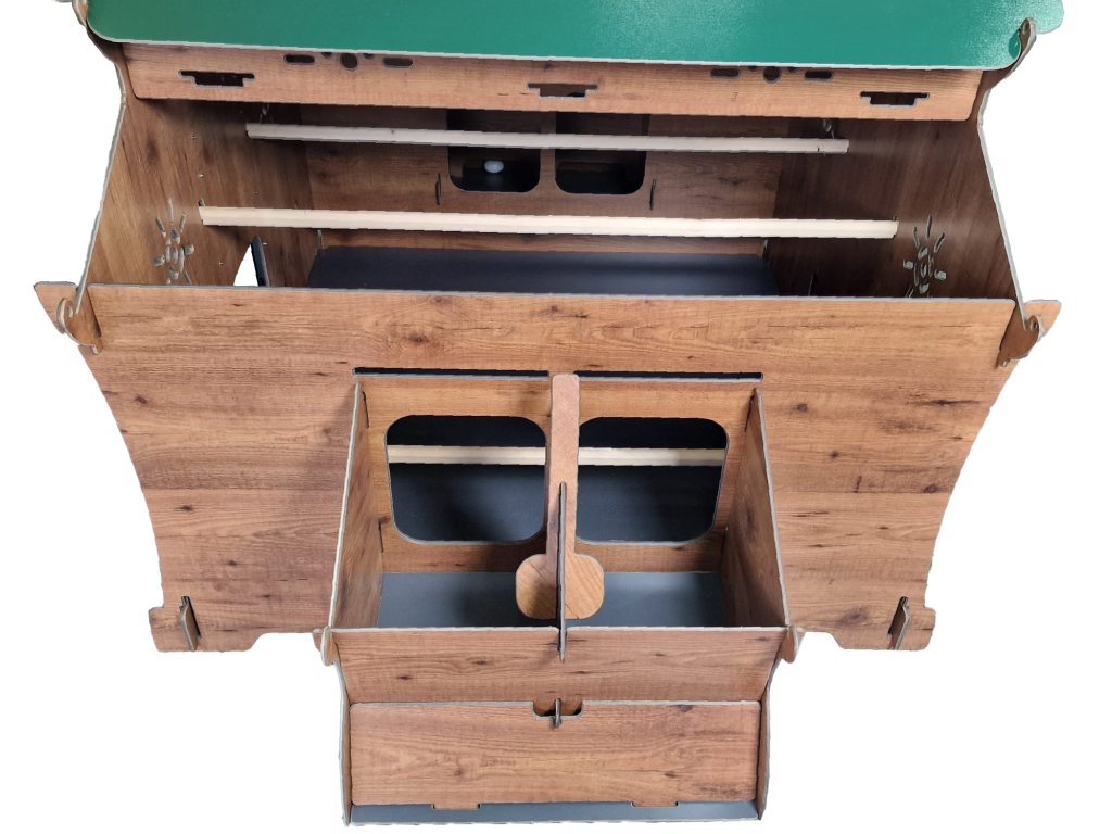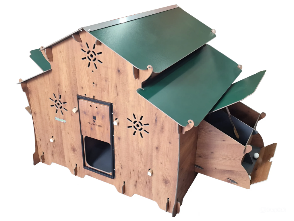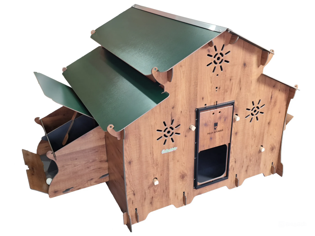Kurnik wyposażony jest w cztery grzędy, na których kury mogą odpocząć w nocy. W kurniku znajdują się również cztery zewnętrzne grzędy , w których kury będą miały wystarczająco dużo miejsca i spokoju do znoszenia jaj. Zbieranie jaj będzie bardzo proste , ponieważ wystarczy podnieść dach gniazd . W zestawie znajdują się drzwi bezpieczeństwa Polly Defender , do których można łatwo podłączyć automatyczne otwieranie kurnika, jeśli zajdzie taka potrzeba. Automatyczne otwieranie i zamykanie kurnika nie jest zawarte w zestawie! Dodatkowo kurnik wyposażony jest w stalową kalenicę o długości 140 cm oraz akcesoria do jej mocowania.